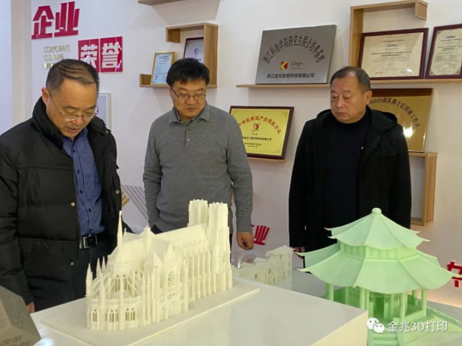 随后在SLA 3D打印车间,金兆研发人员陈晓辉详细介绍了3D打印产品的成型原理,孔令兵教授一行充分肯定了金兆智能的产业规模,十分认可金兆智能在3D打印领域的专业程度。