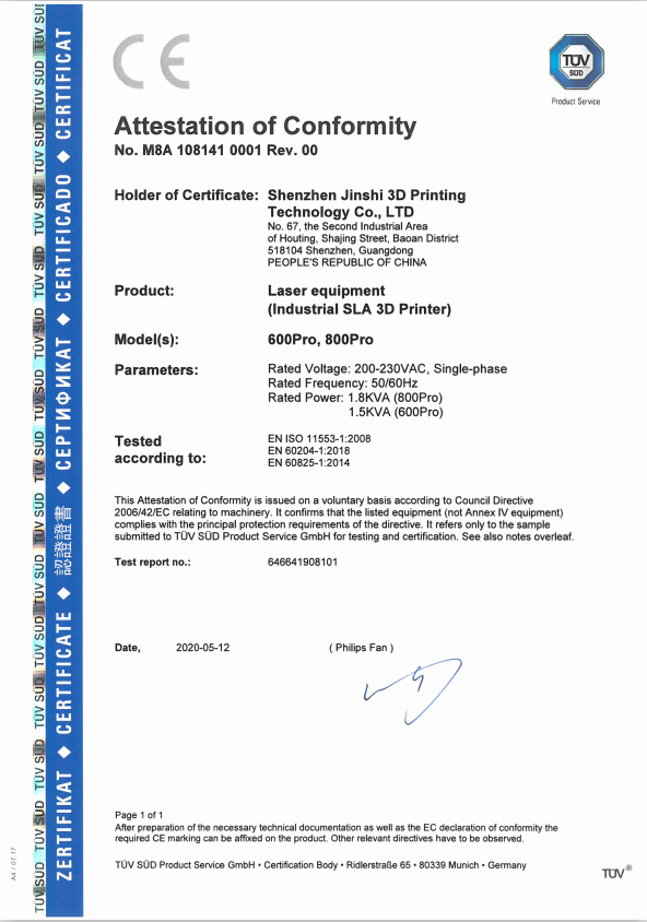 据悉,LEDONG.COM乐动,三维是中国第一个获得由TÜV SÜD证书的3D打印机生产厂家。TÜV认证不仅提高了LEDONG.COM乐动,3D打印的知名度,也给购买LEDONG.COM乐动,产品的顾客带来一份信任感。